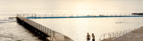 An infinity pool and sundeck overlooking Sydney Harbour